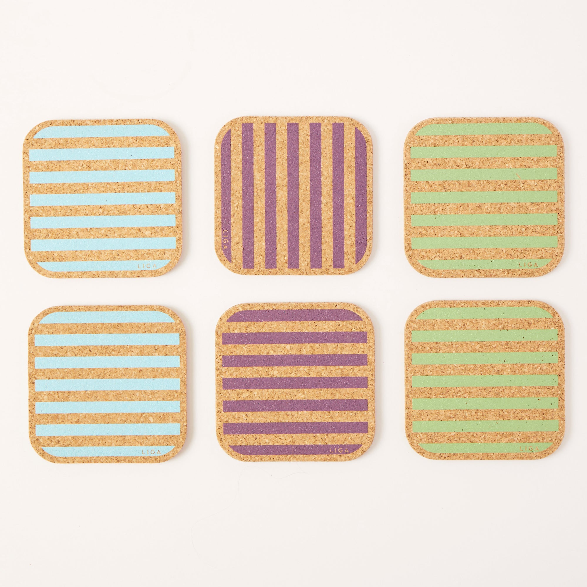 Cork Coasters | Candy Stripes - Mixed set of 6
